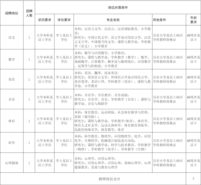 7.普通話標準,身心健康,儀態端莊大方,教師崗位須取得相應學段及以上、相應學科教師資格證書。