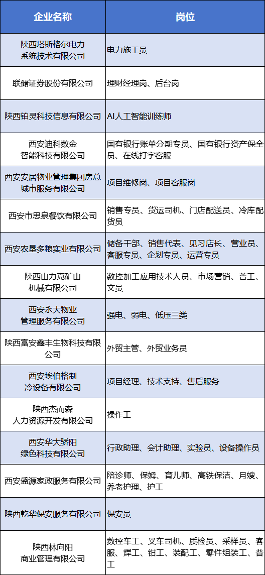“西咸新區金秋招聘季”民營企業專場招聘會崗位及企業名單