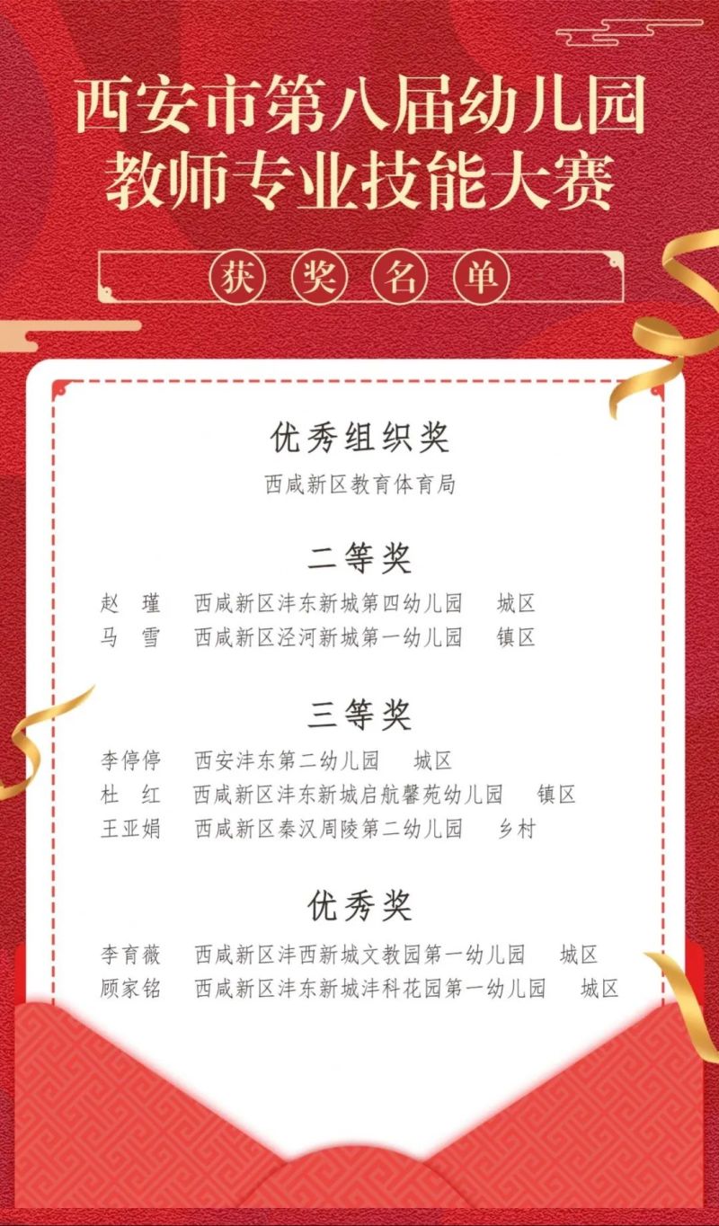 近期,西安市教育局通報了西安市第八屆幼兒園教師專業技能大賽獲獎名單,我局榮獲優秀組織獎,7名選手取得優異成績。