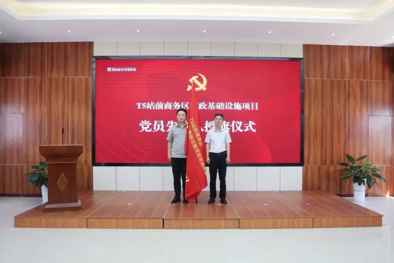 T5站前商務區是陜西、大西安對外開放的空中新門戶和新窗口。當前,西安咸陽國際機場三期擴建工程建設正酣,T5站前商務區市政基礎設施項目是為三期擴建工程中T5航站樓提供配套服務、為T5站前商務區發展提供基礎保障的關鍵性市政建設項目,也是全省、全市、新區、新城四級重點工程。為廣泛凝聚T5站前商務區市政項目各參建單位合力,以圍繞項目抓黨建,抓好黨建促發展為目標,將黨建與項目建設高度融合、一體推進,把黨建優勢轉化為推進項目高質量建設的強大紅色動力,空港新城T5站前管辦黨支部發起成立T5站前商務區市政基礎設施項目黨建聯盟。
