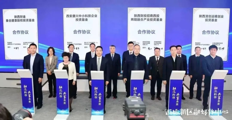 在活動簽約環節,陜西股權交易中心項目、中國建設銀行陜西省分行秦創原創業者港灣、新加坡擬上市企業孵化基地項目和陜投新興功率半導體產業化基地項目簽約落戶西咸新區。西安唐興中小科技企業投資基金、陜西財金泰合建章股權投資基金、陜西清創遠鏡創業投資基金、陜西財投招商西投兩鏈融合產業投資基金等西咸新區戰略性新興產業投資子基金成功簽約。