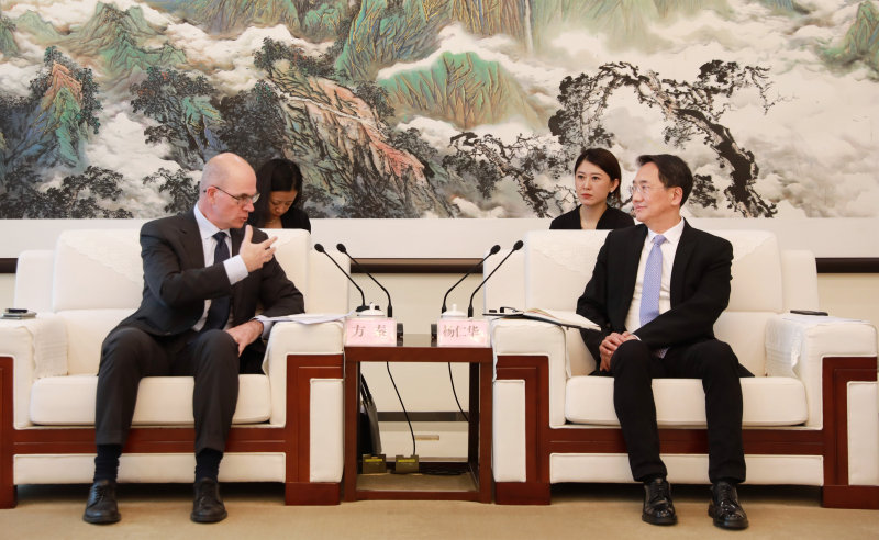 6月8日下午,西咸新區黨工委書記楊仁華會見日立集團高級副總裁、執行委員會成員、日立能源首席執行官方秦。