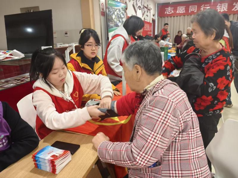 步入“銀齡志愿服務大集”,志愿者們為老人測量血壓,“一對一”給予健康指導和醫療建議,用專業技能筑牢老年群體健康屏障;防詐宣傳、健康講座、法律援助咨詢、冬季消防安全科普,用實用知識守護老人“錢袋子”與“好日子”;義務剪發、醫療產品體驗、老年公交卡辦理、電子產品使用輔導,用熱忱服務提升社區老人生活便利度、舒適感、科技范。一束暖光、一個微笑、一聲清脆的快門聲,公益攝影用光影定格專屬社區居民的燦爛“夕陽紅”;揮毫潑墨、筆走龍蛇,暖心義寫用筆墨描繪轄區老年人的美好生活。