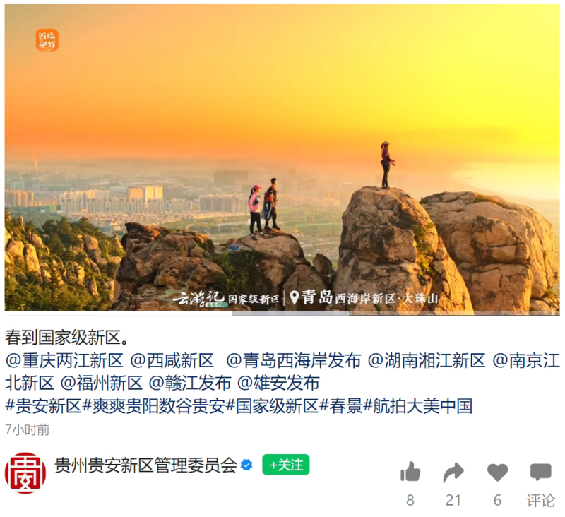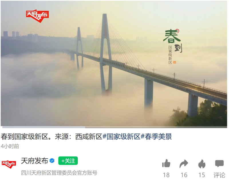 春日正當時,國家級新區活力滿滿,陜西西咸新區聯動重慶兩江新區、貴州貴安新區、青島西海岸新區、四川天府新區、湖南湘江新區、南京江北新區、福建·福州新區、江西贛江新區、河北雄安新區等國家級新區共同發布《春到國家級新區》,邀您共赴一場浪漫奮進之約。