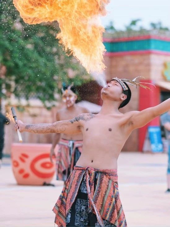 穿特色服飾的舞者超有氛圍感,噴火特技隨手一拍都是大片,夜晚看更震撼。