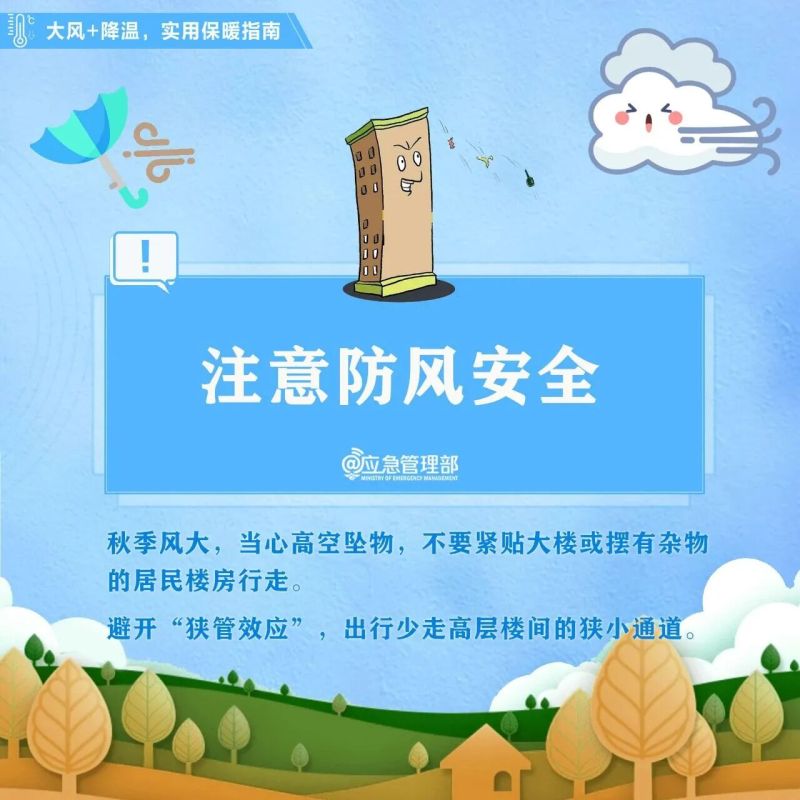 降溫吹風:主要降溫時段在16日夜間-18日夜間,預計平均氣溫下降8~10℃,最低氣溫出現在18日清晨和19日清晨,降至-3℃左右。另外,16日夜間伴有5級左右陣風。