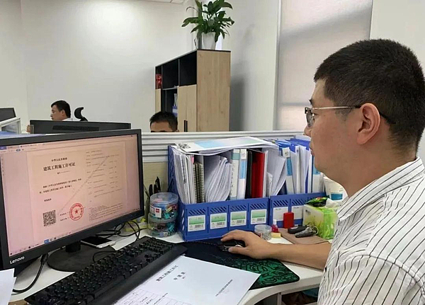 項(xiàng)目報(bào)建員在單位實(shí)時(shí)下載電子建筑工程施工許可證