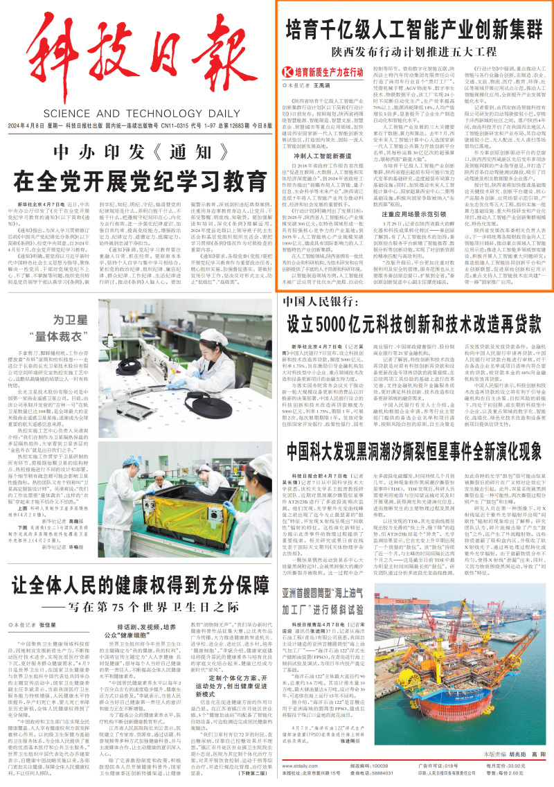 4月8日,《科技日?qǐng)?bào)》頭版刊發(fā)《培育千億級(jí)人工智能產(chǎn)業(yè)創(chuàng)新集群》報(bào)道西咸新區(qū)發(fā)揮秦創(chuàng)原總窗口作用,在人工智能技術(shù)的加持下未來(lái)產(chǎn)業(yè)加速壯大,節(jié)選如下。