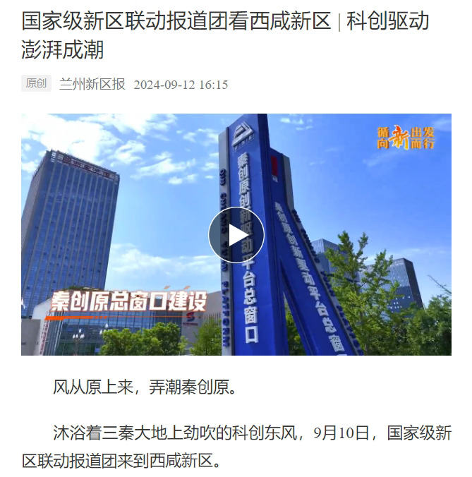 9月10日,國(guó)家級(jí)新區(qū)聯(lián)動(dòng)報(bào)道團(tuán)走進(jìn)西咸新區(qū),感受新區(qū)以科技引領(lǐng),國(guó)家創(chuàng)新城市發(fā)展方式試驗(yàn)區(qū)建設(shè)的生動(dòng)實(shí)踐。