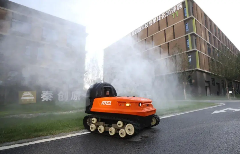 西安沐秦智能科技有限公司展廳,一輛橙黃色的農業無人車引人注目,這款果園植保設備融合了智能傳感、遠程監控等功能,可用于果園農藥噴灑等多方面,能顯著提高作業效率。