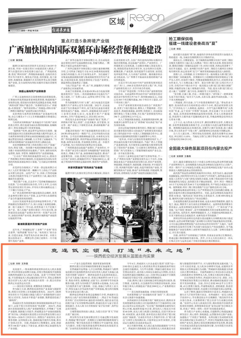 8月4日,新華社《經濟參考報》刊發《競逐低空領域 打造“未來之地”陜西低空經濟發展從藍圖走向實景》,聚焦西咸新區依托秦創原總窗口的科技創新優勢,搶抓低空經濟發展機遇,打造豐富的應用場景體系,為全省低空經濟發展貢獻“西咸支撐”。