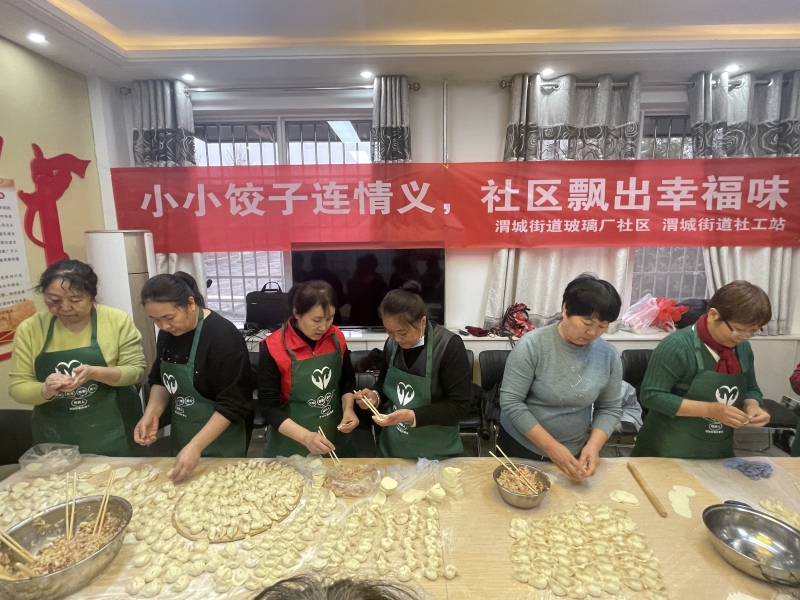 渭城街道玻璃廠社區聯合街道社工站開展“小小餃子連情義,社區飄出幸福味”小年包餃子暨慰問轄區獨居老人活動。社區室外寒氣襲人,但室內卻溫暖四溢、其樂融融。社區工作人員、網格員、志愿者和居民朋友一起布置現場、切菜拌餡、和面搟皮……場面溫馨熱鬧。餃子雖小,卻有大愛,志愿者們把煮好的餃子分裝至餐盤,送到轄區獨居老人家中,為他們送上了一份暖胃暖心的關懷與慰問,與老人們共慶小年,共享節日的喜悅。