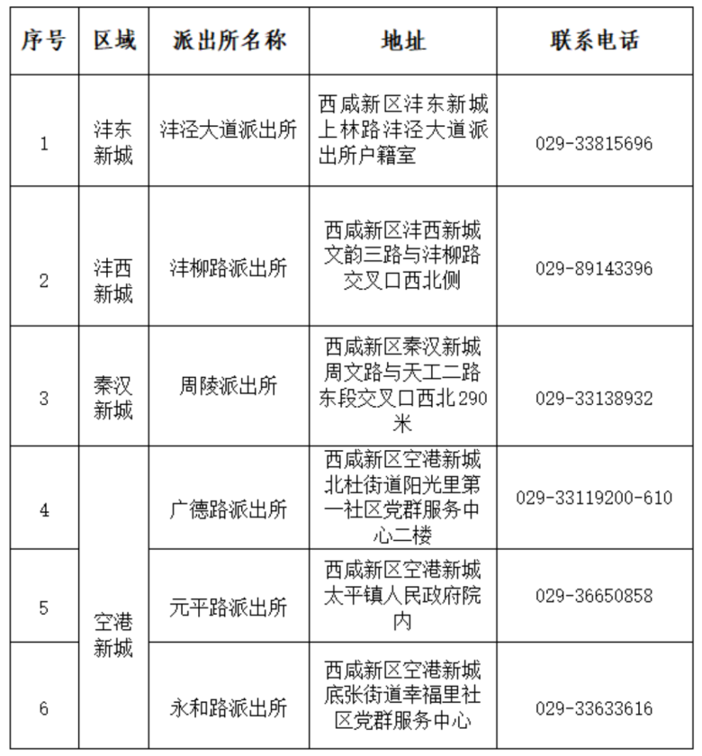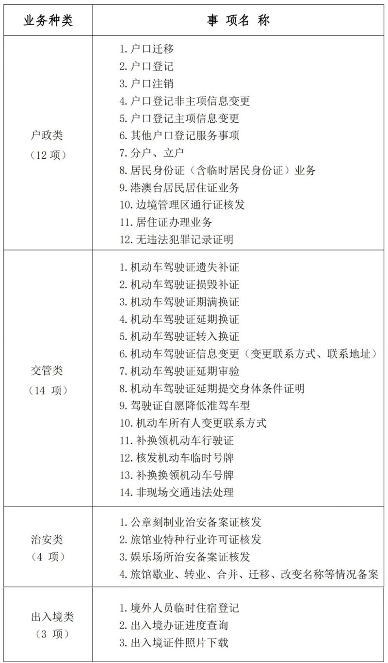 即日起,群眾可在周陵派出所、灃涇大道派出所和灃柳路派出所3個派出所,以及底張街道幸福里社區黨群服務中心、北杜街道陽光里第一社區黨群服務中心、太平鎮人民政府的戶籍窗口,“一站式”辦理包括戶政、交管、出入境、治安等33項107條公安綜合業務。