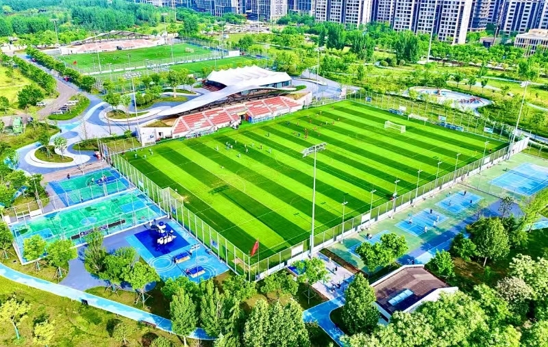 項目占地143畝,包含2塊11人制天然錨固草專業足球場和1塊8人制、2塊5人制人造草專業足球場,同時配備了籃球、乒乓球、羽毛球等群眾健身活動場地,是具備國際水準的專業競技足球訓練中心、青少年足球培訓中心、區域社區全民健身及體育運動健康中心,能夠滿足國內標準賽事、國際標準訓練及群眾專業足球訓練和大眾體育活動的需求。五一假期期間,國家級青少年女足賽事在灃東足球公園落幕,公園自2023年3月落成開園以來,已舉辦比賽千余場。