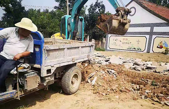 馬務村清理街道磚石瓦礫、建筑垃圾殘留