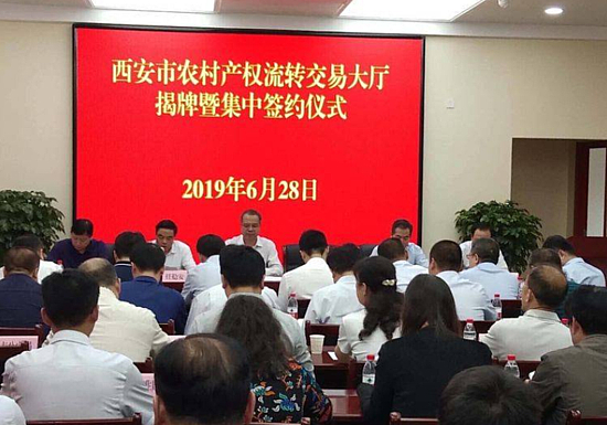2019年6月28日上午,西安市農村產權交易大廳揭牌暨集中簽約儀式成功舉辦,西咸新區秦漢新城正陽街辦的紅林牡丹園基地項目成功簽約。