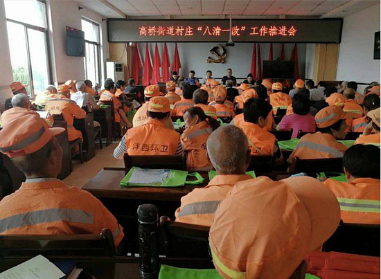 召開高橋街道村莊“八清一改”工作推進會,帶領各村環境衛生負責人及保潔員學習改善人居環境倡議書。