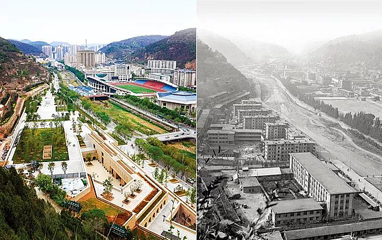 左圖為2019年5月5日拍攝的延安市南河河道;右圖為1983年12月26日拍攝的延安市南河河道 圖片來源:求是網