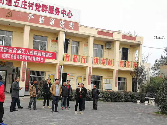 近日,由秦漢新城周陵街辦、咸陽企業商務管理技能培訓學校承辦的無人機應用技術培訓班在周陵街辦五莊村黨群服務中心順利結業,來自全辦轄區各村的農村待業青年、農機專業合作社、返鄉創業青年、青壯年農村富余勞動力等共計50名學員,通過理論與實踐技能考試,獲得了由秦漢新城頒發的無人機駕駛員就業培訓合格證書,圓滿得完成培訓計劃,成為專業的"農民飛手"。