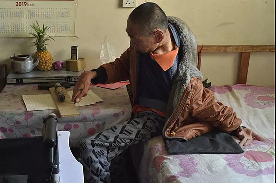 這篇“文章”的作者名叫張永江,是涇河新城永樂鎮(zhèn)大齊村的貧困戶?,F(xiàn)年52歲的他一出生就遭遇了命運(yùn)無情的捉弄——由于出生時患腦癱疾病導(dǎo)致肢體一級殘疾,常年只能坐在輪椅上,無法上學(xué),沒有勞動能力,沒有朋友,只有母親王鳳英與他相依為命。2017年脫貧攻堅(jiān)工作開展以來,張永江感受到了生活的巨大變化——雖然文化程度不高,行動不便,但他看到家里的墻變白了,居住條件變好了,生活水平提高了,最重要的是自己母親那張滿是皺紋的臉上笑容一天比一天多了。