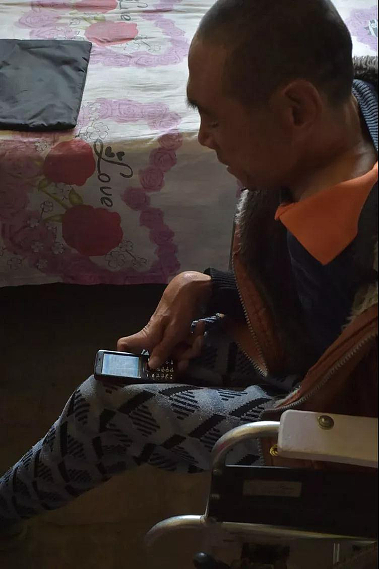 路寬路平,精準(zhǔn)扶貧送我輪椅一個,我坐著輪椅出進(jìn)方便。拖了國家,累了母親,麻煩大家。