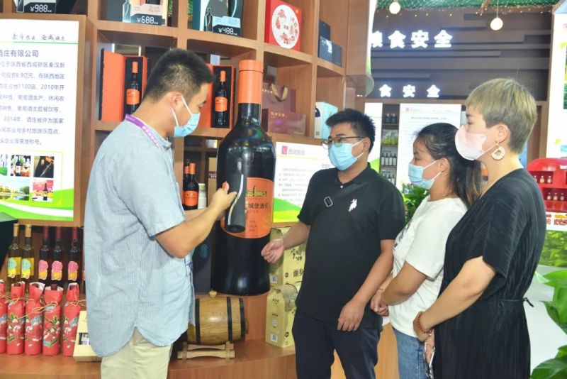 在西咸新區的葡萄展區,陽光玫瑰、夏黑、浪漫紅顏等十余個優質品種,讓參觀者大飽口福。這邊品嘗著香甜葡萄,那邊品鑒著葡萄美酒。陜西張裕瑞那城堡酒莊設計策劃部浩鑫杰為觀眾介紹了酒莊的佳釀,讓大家了解葡萄酒的釀酒過程、品酒知識,并傳授如何辨別好的葡萄酒。