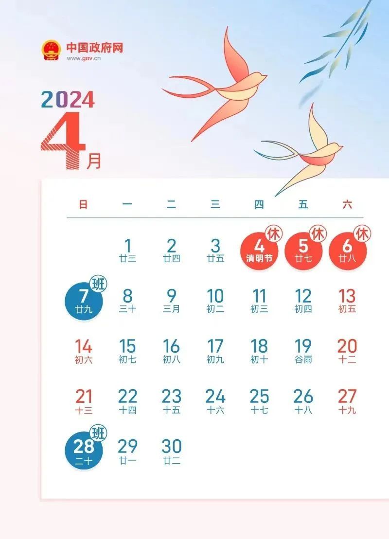 今年清明節放假時間為4月4日至4月6日,共3天,4月7日上班;預計清明假期將出現祭掃大流量。清明假期,高速公路將對7座以下(含7座)載客車輛實施免費通行政策,具體時間為:2023年4月4日0時至4月6日24時。