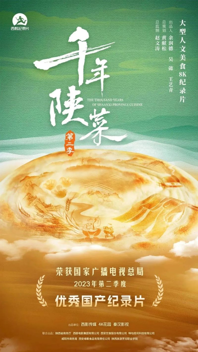 近日,大型人文美食8K紀錄片《千年陜菜》第二季成功獲評國家廣播電視總局2023年第二季度優秀國產紀錄片。評選工作由國家廣播電視總局組織相關廣電機構負責同志和行業專家進行,此次全國共選送122部紀錄片,最終,包括《千年陜菜》第二季在內的37部紀錄片最終入選。