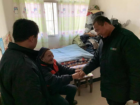 在官莊村村委會(huì)干部的陪同下車長(zhǎng)們深入農(nóng)戶家中,與老人傾心交流,了解老人的身體、生活狀況,并為13位老人送去了米面油等生活用品,不僅方便了老人們的生活,也溫暖了他們孤獨(dú)的心。