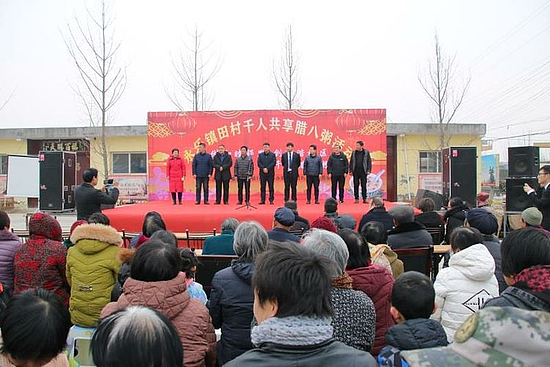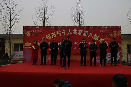 為不斷推進社會主義新農村建設,豐富活躍基層群眾文化生活,2020年1月2日臘八節當天,由永樂鎮田村村委會、泰隆村鎮銀行聯合主辦的以“做和睦鄰里,創和諧社區,濃情臘八節,千人臘八粥”為主題的千人享粥活動在永樂鎮田村村委會廣場舉行,田村、北流村、鐵孟村、尚家村村民及干部近300余人參與,永樂鎮、涇陽泰隆村鎮銀行主要負責人參加。