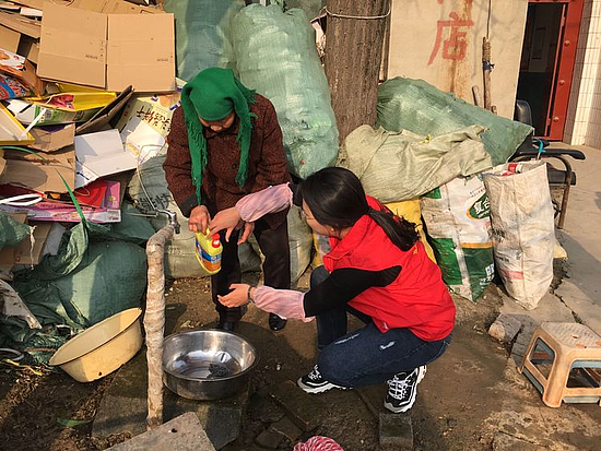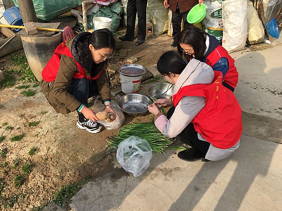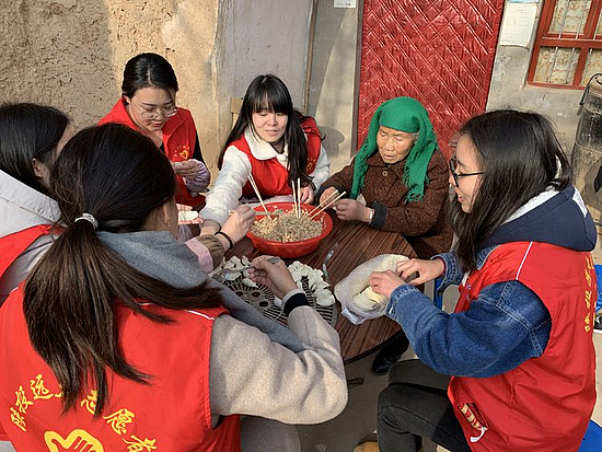 19日一早,街道志愿者們早早買好了食材,帶著東西來到張家灣村80歲貧困戶家段孟蘭家中,一邊包水餃清掃院子,一邊聊家常。聽說街道志愿者來為貧困戶包水餃,村里的其他幾家村民都來幫忙,支起大鍋,燒上水。不一會兒熱騰騰的水餃就端上了桌?!拔兜勒娌毁嚕 睅孜话⒁踢B聲對志愿者們表示感謝。