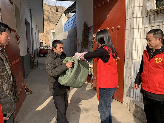 隨后,志愿者們把一碗碗充滿著愛的水餃送到了村里其他幾位貧困戶家中,為他們送上了棉被、電熱毯、牛奶等慰問品,并囑咐他們,天冷了要多注意身體,一有時間就會來看望他們。