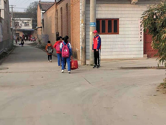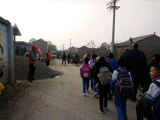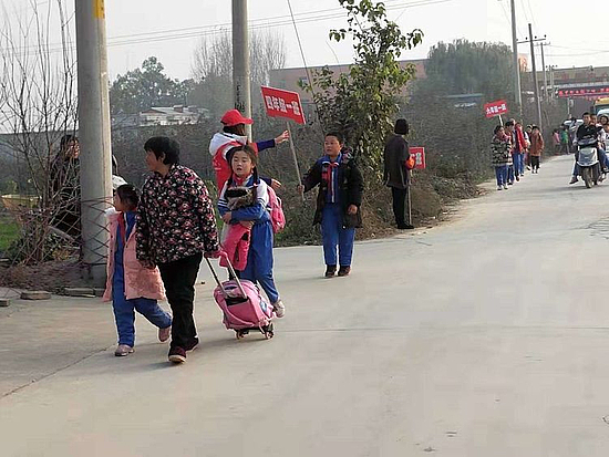 (志愿者老師護(hù)送路隊(duì)到達(dá)各班的散隊(duì)點(diǎn))