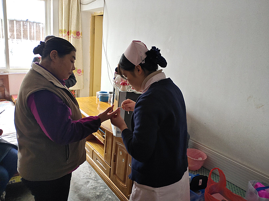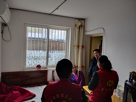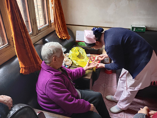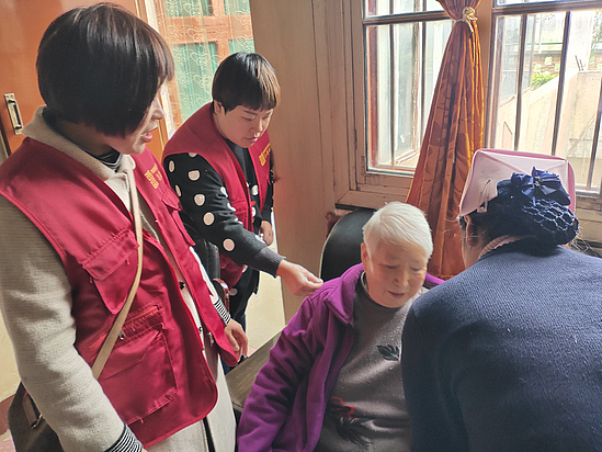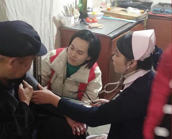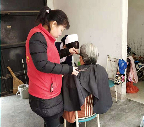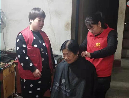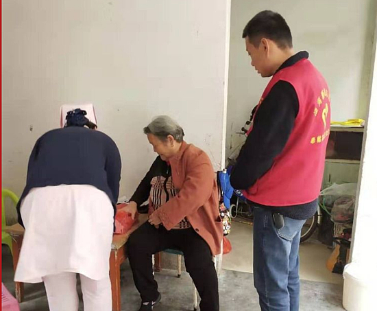 志愿者們為老人們測量血壓、血糖,做頸肩按摩、理發、修腳,打掃衛生。