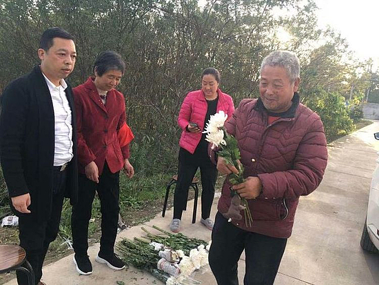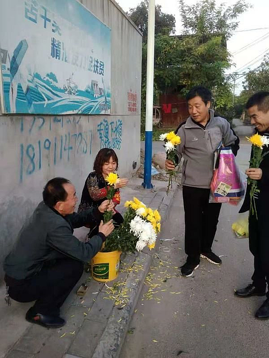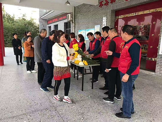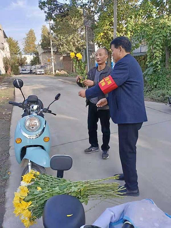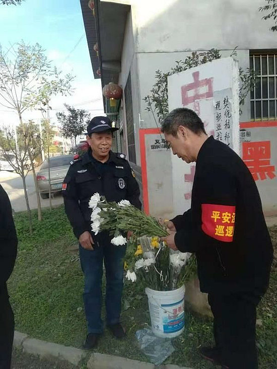 志愿者向群眾發(fā)放鮮花