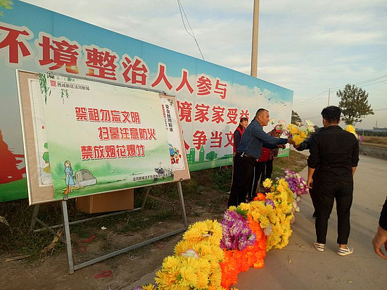 活動中,結(jié)合實(shí)際,三委會成員、黨員干部、志愿者走入農(nóng)戶家中、村民祭祀的途中等形式,積極向村民們發(fā)放“寒衣節(jié)”文明祭祀倡議書,號召廣大村民民通過獻(xiàn)一束花,敬一杯酒,講一段往事等方式來懷念先人,將祭拜逝者的傳統(tǒng)習(xí)俗以健康、文明的方式表達(dá),告別祭祀陋習(xí),人人爭做文明新風(fēng)的倡導(dǎo)者和傳播者。