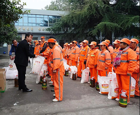 慰問中,周陵街道辦事處主任羅啟超為267名長期在一線辛勤工作的環衛工人發放了慰問品,對他們為城市環境美化,文明衛生城市建設等工作付出了艱辛的汗水,給予充分肯定和高度的評價。鼓勵他們繼續發揚一不怕苦、二不怕臟、三不怕累的周陵環衛人精神,努力奉獻社會,服務人民,爭做新時代的環衛人。