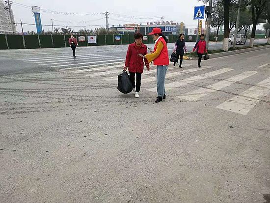 10月22日,雙照街道新時代文明實踐志愿者在轄區人流車流量最為密集的北上召十字開展交通文明勸導活動,宣傳文明交通、安全交通知識,引導群眾文明通行。