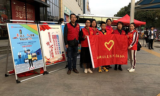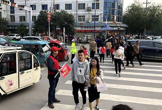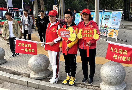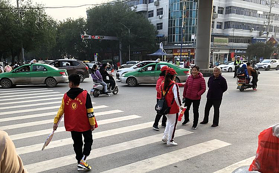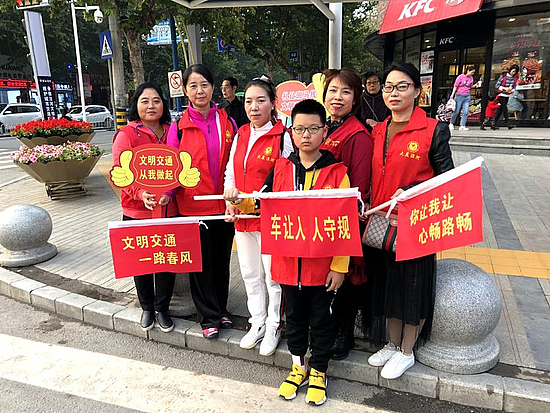 2019年10月20日下午,西咸新區大美涇河志愿者服務隊的志愿者們,在涇河新城黨委宣傳部(文明辦)的組織指導和涇河新城交巡警大隊的協助下,走上街頭開展了“車讓人人守規”文明行為勸導及文明交通宣傳活動。志愿者們和涇河新城交巡警大隊的民警們,一起在涇干街道辦交通最為繁忙的郵局十字路口開展志愿活動,志愿者們拿著“文明交通”的小紅旗和點贊牌,在路口配合交警維持交通秩序并宣傳文明交通知識,勸導車輛按規行車,呼吁廣大駕駛人自覺養成斑馬線前禮讓行人的好習慣,為自覺禮讓行人的車輛點贊!同時,勸導廣大的市民能夠自覺從斑馬線上行走,遵守交通法規,讓我們的交通更暢通,城市精神文明建設得更好!