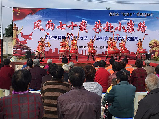 10月17日是全國(guó)第6個(gè)“扶貧日”。窯店辦為開展好“扶貧日”系列活動(dòng),持續(xù)推進(jìn)文化扶貧,豐富群眾精神文化生活,堅(jiān)定貧困群眾脫貧致富信心,17日上午,在黃家溝村文化活動(dòng)廣場(chǎng)舉行2019年全國(guó)“扶貧日”系列活動(dòng)之“風(fēng)雨70載,共赴小康路”文藝演出。