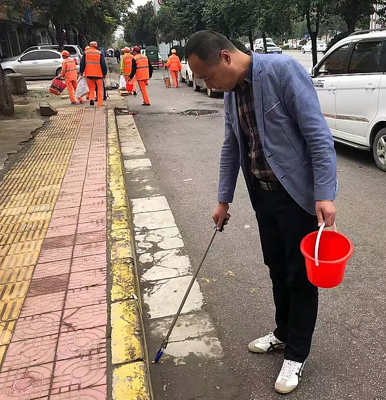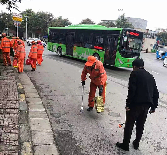 活動中,參與人員手拿垃圾夾、小桶對陵照小學及賽特奧萊周邊的煙頭、零散垃圾開展撿拾活動,確保不放過任何一個死角。同時,周陵辦組織清掃員100余人對周陵街道、天宮