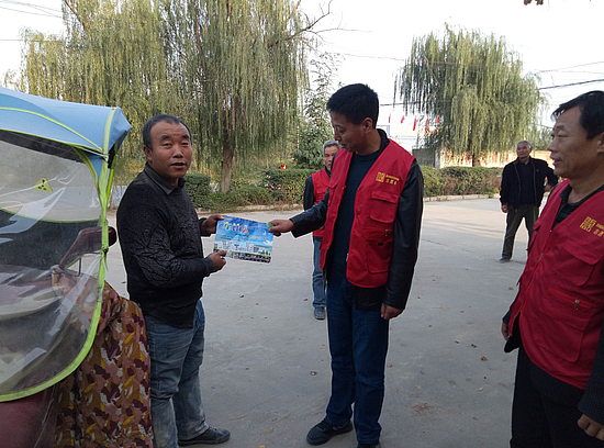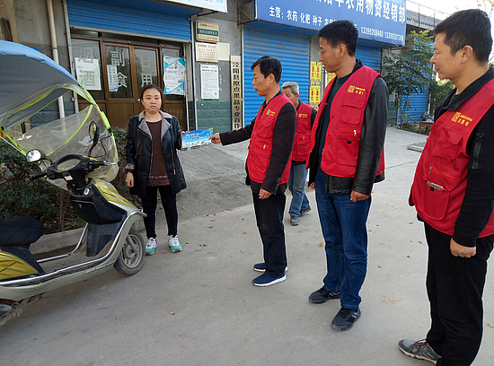 會后,李書記和張主任帶隊和志愿者在主要路口及村里給村民做文明出行的宣傳活動!