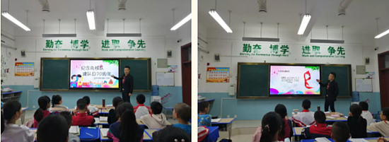 10月12日,全校少先隊員舉行了慶祝建隊70周年主題升旗活動。活動在莊嚴的國歌聲中拉開了序幕,隨后嘹亮的出旗曲響起,四年級第二中隊的四名少先隊員手舉少先隊隊旗走了上來,全體少先隊員在大隊輔導員侯映妮老師的帶領(lǐng)下向隊旗敬禮,接下來侯老師帶領(lǐng)全體隊員重溫了入隊誓詞,并回顧了中國少年先鋒隊70年的光榮歷程,了解了少先隊的發(fā)展史,熟知隊章、隊歌、隊徽。活動還對少先隊員們進行“敬隊禮”、“戴紅領(lǐng)巾”、“唱隊歌”等的培訓。