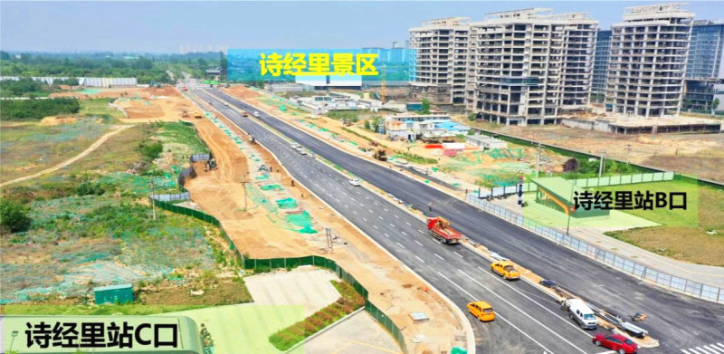 作為西安地鐵16號線詩經(jīng)里站“一站一方案”的重要配套,道路開通后,從詩經(jīng)里地鐵站(B、C口)下車的游客沿著昆明五路向西步行600米,即可直達詩經(jīng)里景區(qū)。道路的開通將進一步織密區(qū)域路網(wǎng)、暢通微循環(huán),為往來游客和附近居民提供出行便利。