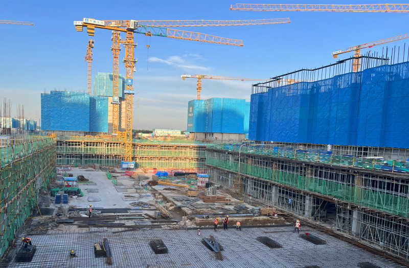 截至目前,7棟樓已沖出“正負零”,正在進行主體施工,4棟樓正在進行地下室施工,3棟樓正在基礎施工,預計年底14棟樓主體結構全部封頂。