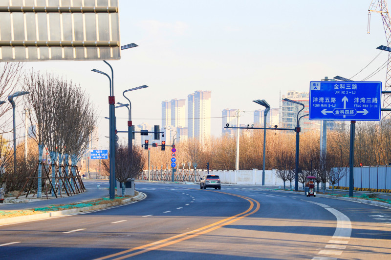 目前,路面標線正在逐步完善,交通標牌等交通工程已按要求設(shè)置,路燈、交通信號燈等設(shè)備全面運行。