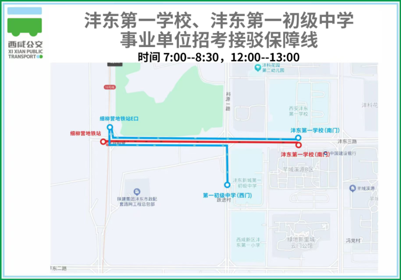 “灃東第一學校”和“灃東第一初級中學”的考生可以乘坐地鐵16號線到“細柳營地鐵站”,換乘接駁車往返至考點。