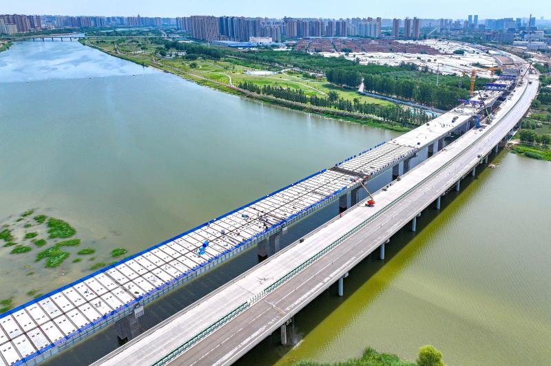 在建設現場,全線控制性工程——渭河特大橋最引人注目。這座正在經歷“蛻變”的大橋,于今年五月底順利完成首個邊跨現澆段澆筑。這一關鍵節點的攻克,不僅為后續施工按下“加速鍵”,更為全橋合龍奠定了堅實基礎,標志著西興高速改擴建工程朝著通車目標邁出了一大步。