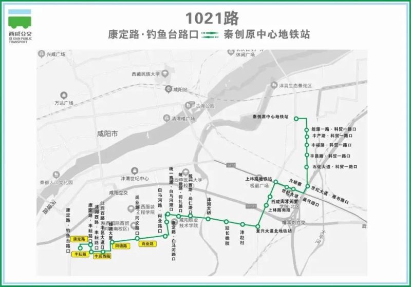 康定路·釣魚臺路口始發,至上林路南段后,經世紀大道東段、科貿一路、能源二路至秦創原中心地鐵站。