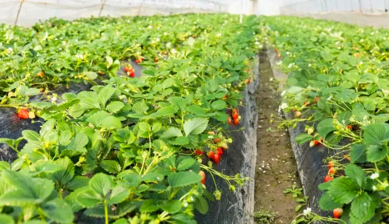 采摘園的草莓全部采用大棚種植,實施無公害大棚栽培技術,形成了種植、觀光、采摘為一體的都市農業。棚內,長長的草莓藤一根根“匍匐”在地,鮮紅、飽滿、汁甜,十分誘人。